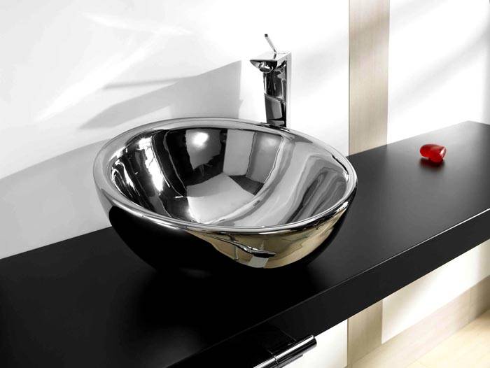 When choosing a round product, special attention should be paid to the mixer.Conventional formats in this design will look ridiculous. Choose from a chrome-coated designer faucet or a discreet one-leg device. It is not worth picking up complex products, in this case the luxury of a round sink will emphasize the simplicity of the fixtures.