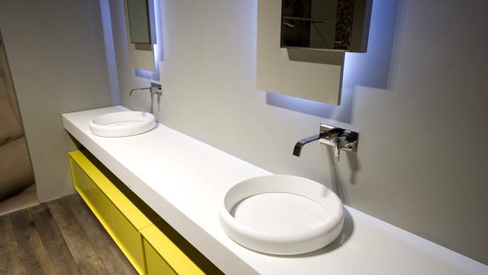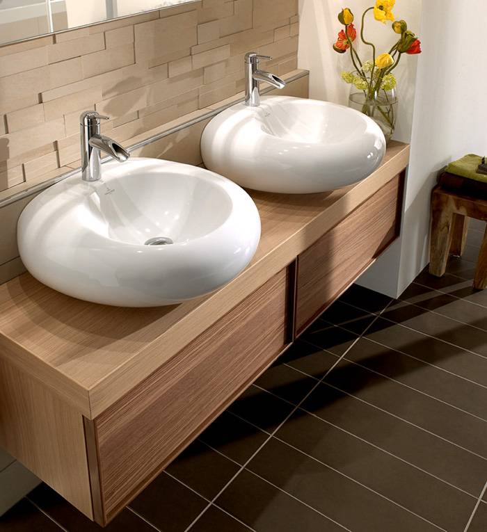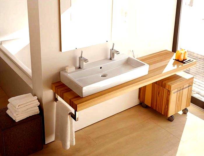 The choice of countertops for the bathroom under the sink is not an idle question. There are many factors to consider for the final product to please for years to come. After determining the material, installation method and price, it is important to consider the number of family members. It is quite possible that you should opt for an oversized product with multiple sinks.