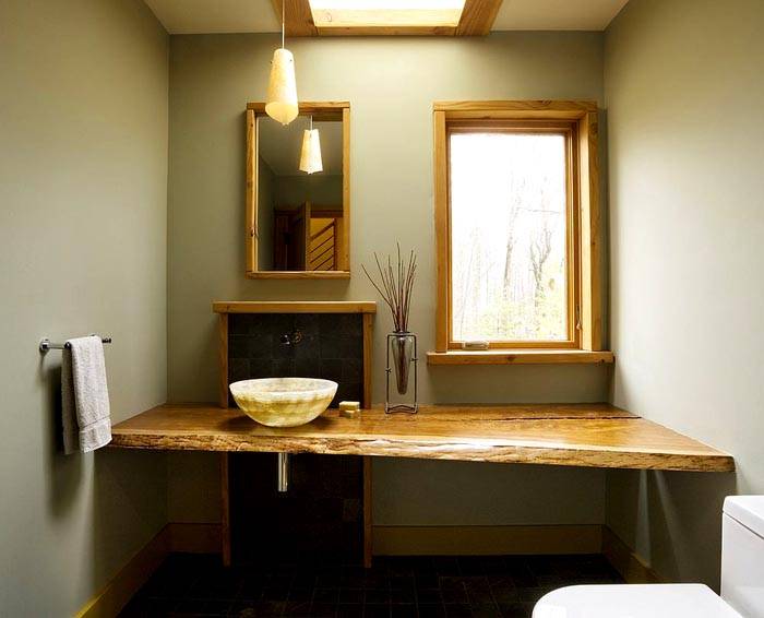 Artificial and natural stones were replaced by wooden surfaces. They are much cheaper than stone countertops and are also maintainable. They can be easily changed to new ones in case of unforeseen situations. The most important benefit of wood is to create soft comfort and warmth in the bathroom.