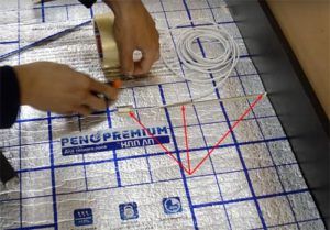 Installation of infrared film underfloor heating under tiles
