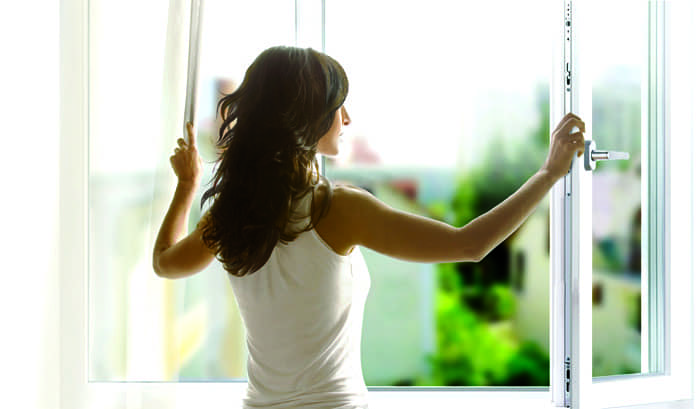 All stickers from window profiles must be removed by washing the frames with soapy water and alcohol.