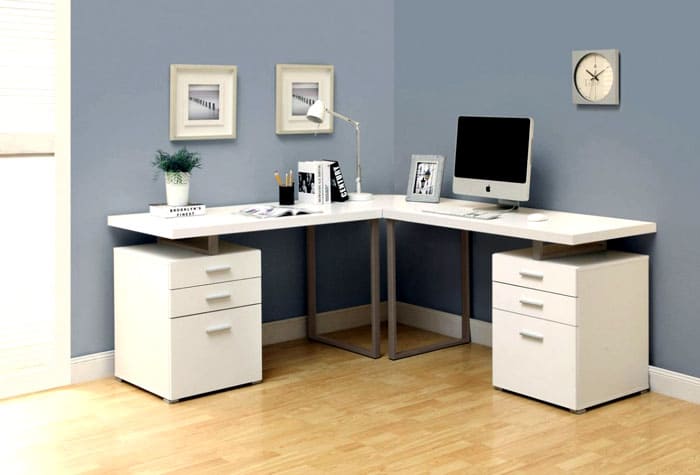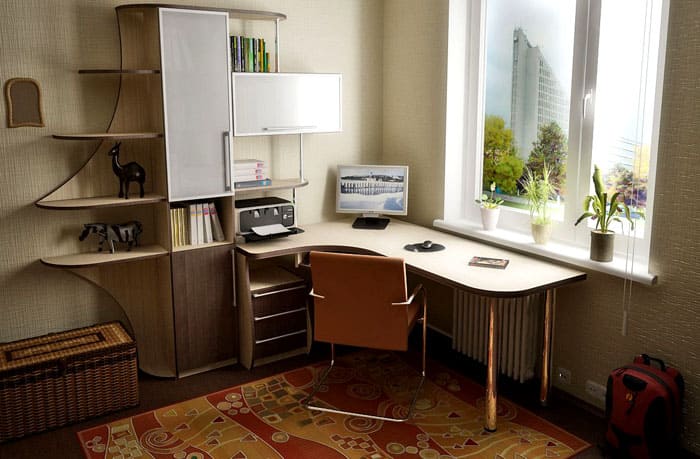 We offer you to see photos of home interiors, with a good arrangement of corner computer tables. Perhaps a ready-made solution will be useful to you.