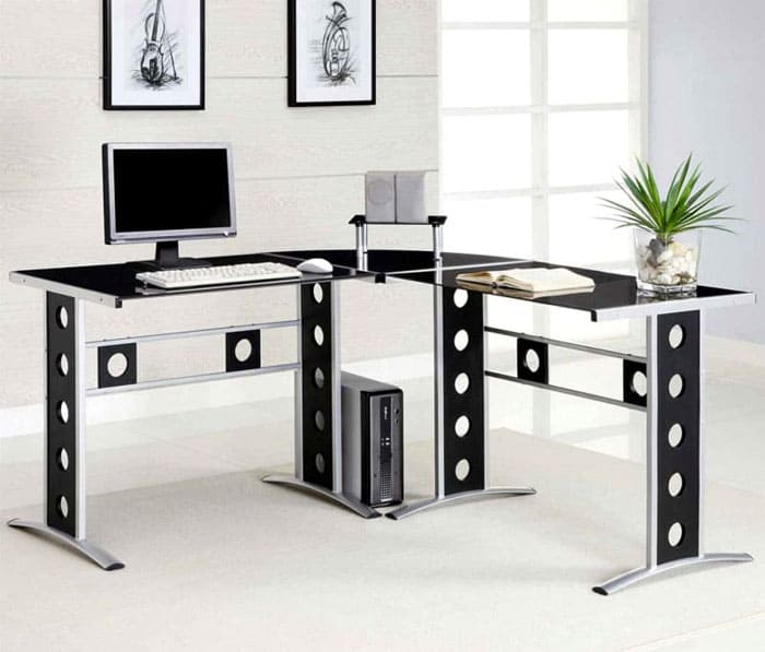 Tempered glass does not make the table fragile, although it turns a stylish product into undesirable for children. Glass tables seem weightless, but they are able to withstand the monitor and some other working elements. Such models cost a lot and are capricious in terms of care.