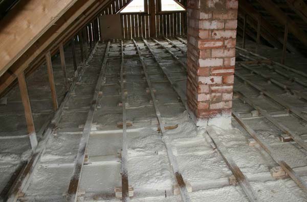 Unlike expanded polystyrene, its competitor polyurethane foam does not support combustion, therefore, it is quite acceptable for housing.This material is available in the form of solid plates or in the form of viscous sprayable compositions that foamed at the time of application, similar to polyurethane foam. Adhesion, that is, the adhesion to the surface of such a composition is extremely high, that is, there are simply no gaps and gaps left. Insulating the ceiling in a house with a cold roof using polyurethane foam is convenient, because this material does not absorb moisture, and therefore does not require additional vapor barrier.