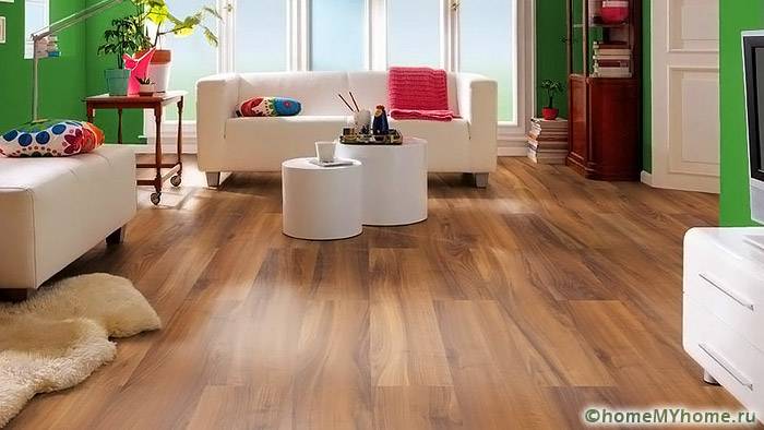 Laminate is a modern coating option. Initially, this material had a low resistance to moisture. An excellent solution is considered a waterproof laminate of 12 mm class 33. Germany is the country of origin of this material. A coating of this quality can even be used in swimming pools. Laminate is characterized by its versatility and high cost.