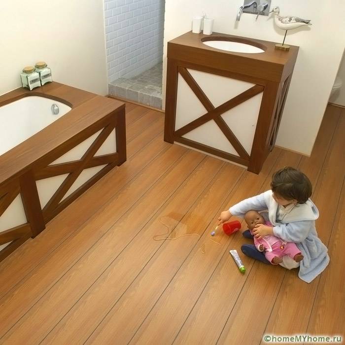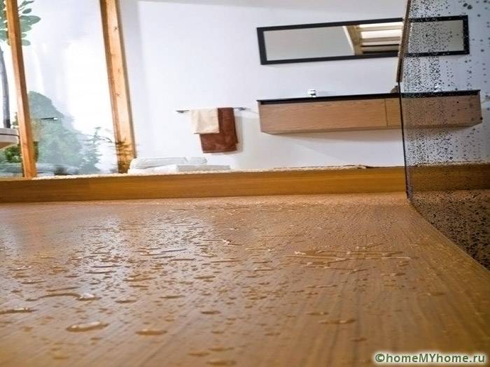 You can buy waterproof laminate not only for living rooms, but also for a shower or a toilet. Some types of coverings are made with imitation of natural stone, ceramic tiles or slate.