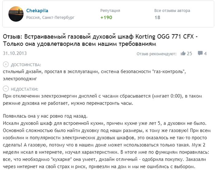 Another German manufacturer of equipment for various purposes. In the group of "gas appliances" the model is popular Korting OEG 771 CFX, which is a built-in oven, functional enough and beautifully decorated.