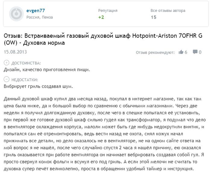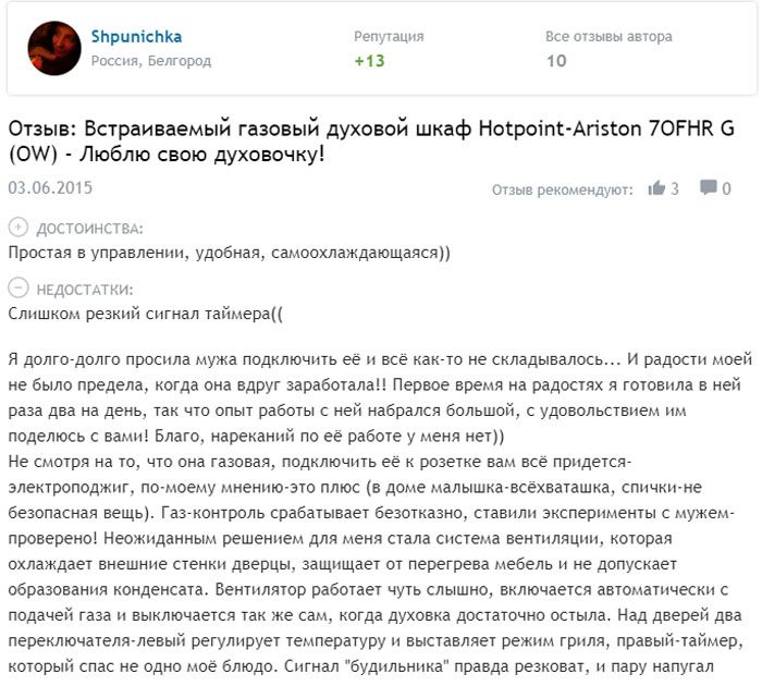 Feedback on the model "Hotpoint-Ariston FHRG (OW)":