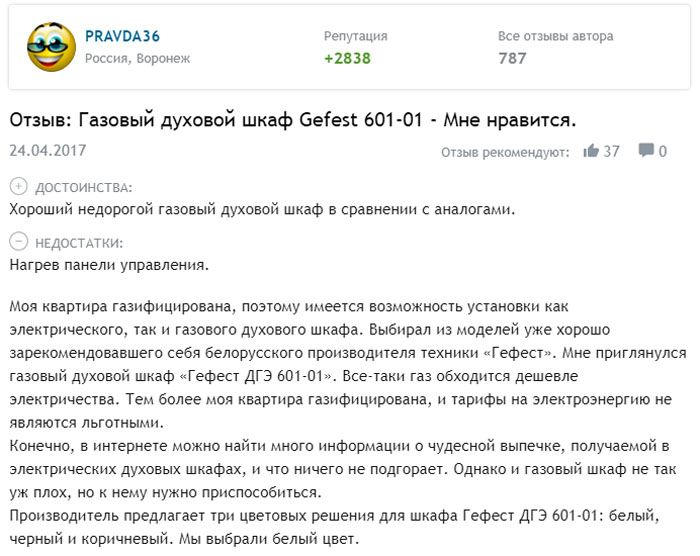 Gefest manufactures gas, gas-electric and electric kitchen appliances used for cooking. In the category "built-in gas ovens" the most popular models are Gefest 621-01"And "Gefest 601-01".