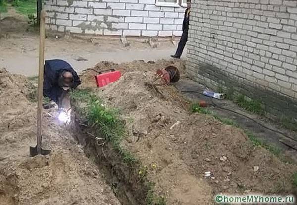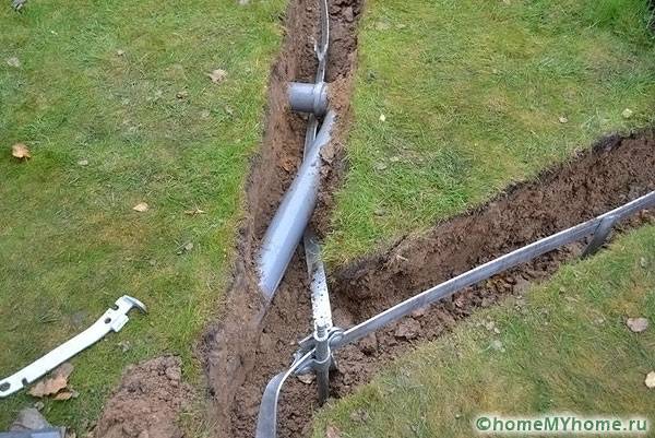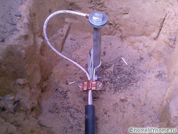 Then a cable is connected to the plate with a bolt, the trenches are covered with soil.