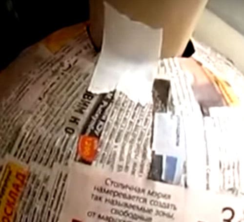 Además, este método de papel maché es bueno porque se puede utilizar para corregir el producto del molde, diferentes palos, un cuchillo, todo lo que se requiere para crear una imagen precisa de una idea.