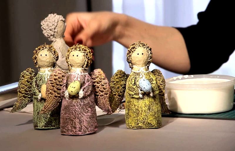 Una vez que la figura está lista, debe cubrirse con pintura sólida. Después de que se seque, ya puede decorar el producto con decoupage, pintura, craquelado, pátina y, al final, cubrirlo con barniz de acabado.
