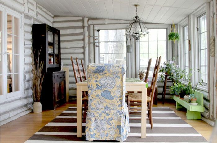 Casas de campo de verano de un tronco con una foto dentro de la casa.