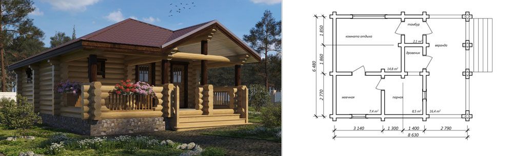 Proyectos de sauna con sala de relajación y terraza. En una publicación separada, aprenderá sobre los diseños de baños más exitosos con una extensión en forma de terraza o terraza.