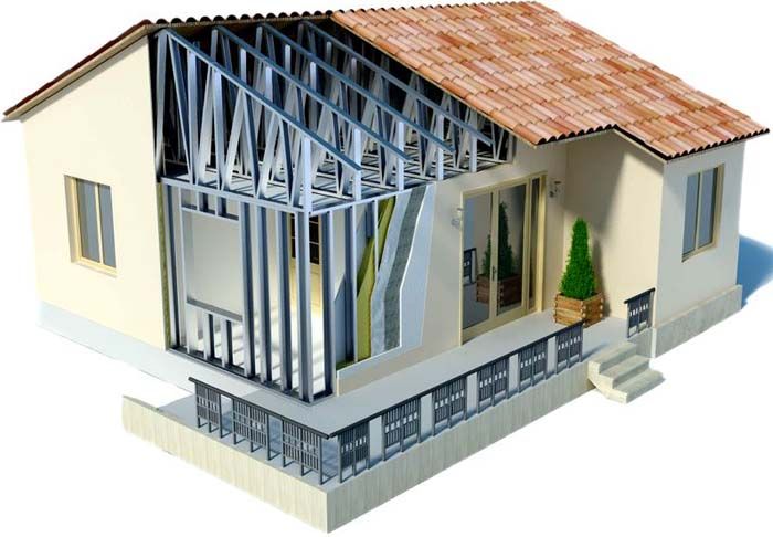 Proyectos de casas en marco de metal y madera: instalación rápida.