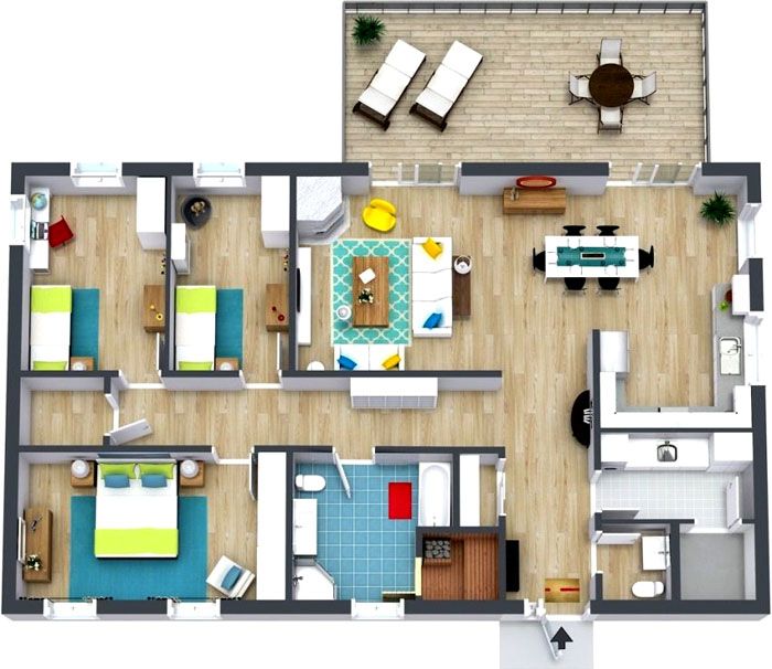 Este ejemplo muestra la importancia de la fase de diseño. Para simplificar la tarea, es necesario elaborar una lista de criterios obligatorios de antemano. Definir numero de habitaciones, habitaciones para niños, otras salas de estar y servicios públicos independientes. La anchura de los pasillos facilita el desplazamiento.
