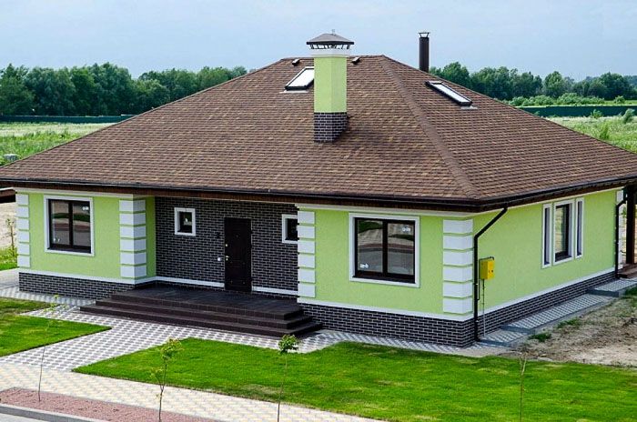 La ausencia de tramos de escaleras no solo simplifica el diseño de proyectos de casas de un piso. Esto reduce en gran medida la carga real sobre los usuarios futuros y aumenta el nivel de seguridad. La estabilidad de un edificio de un piso se puede garantizar con el uso de una base económica, incluso en suelos blandos, con un alto nivel de agua subterránea. El corto plazo para la implementación de los planes de construcción es positivo. Esta ventaja se puede aprovechar con una preparación cuidadosa.
