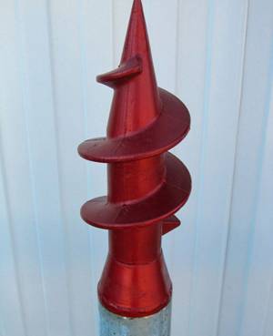 - Los soldados consisten en un tubo con un extremo puntiagudo, al que se sueldan las cuchillas. En la parte inferior, los elementos de tornillo soldados están hechos de acero grueso. En la producción de tales soportes, es importante que los elementos soldados tengan formas geométricas claras. La más mínima violación conducirá a la desviación del pilote de la vertical. Además, en presencia de suelo denso en el área, la soldadura en el tornillo puede estallar durante la instalación del poste. Como resultado, el soporte girará y perderá sus funciones de soporte de carga. No es raro que la soldadura falle después de la instalación de la columna, varios años después del inicio de la operación de la base. Un soporte sin paletas estabilizadoras puede hundirse debajo de la masa del muro.