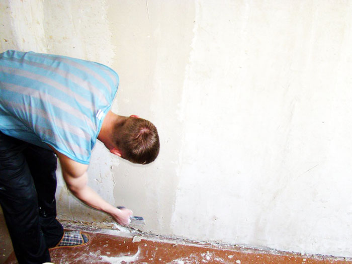 Така че нищо да не пречи, по-добре е да премахнете всичко от стаята, след което спокойно да премахнете старото покритие. Ако стените са неравни, този сериозен дефект ще трябва да бъде коригиран.