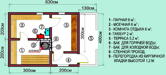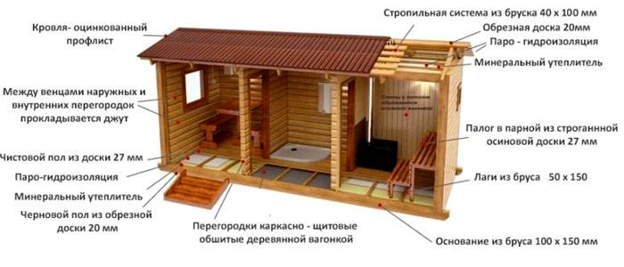 Le sauna traditionnel à domicile comprend une salle de bain, un hammam et un dressing. Dans le même temps, le vestiaire n'était auparavant pas chauffé et servait à changer de vêtements. De plus, une variété d'ustensiles de bain y étaient rangés. C'est souvent dans cette pièce qu'une salle de repos est équipée, où vous pouvez vous asseoir et boire du thé. En été, en passant, il y aura une terrasse.