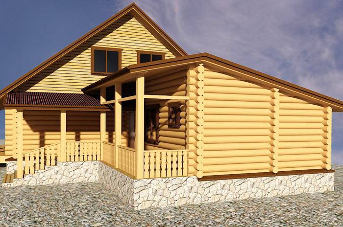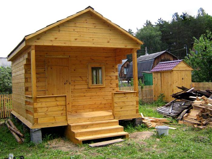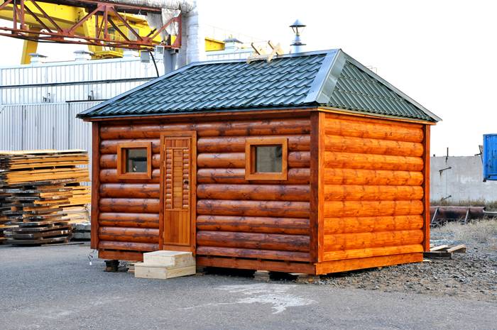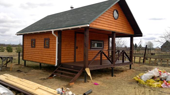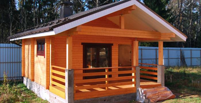 Le plus souvent, la construction est réalisée à l'aide de rondins et de poutres arrondies. Un sauna en forme de barre est une option plus simple que les bûches arrondies. Poutres est un matériau moins cher que les grumes.La construction en bois est réalisée en utilisant fondation colonnaire.