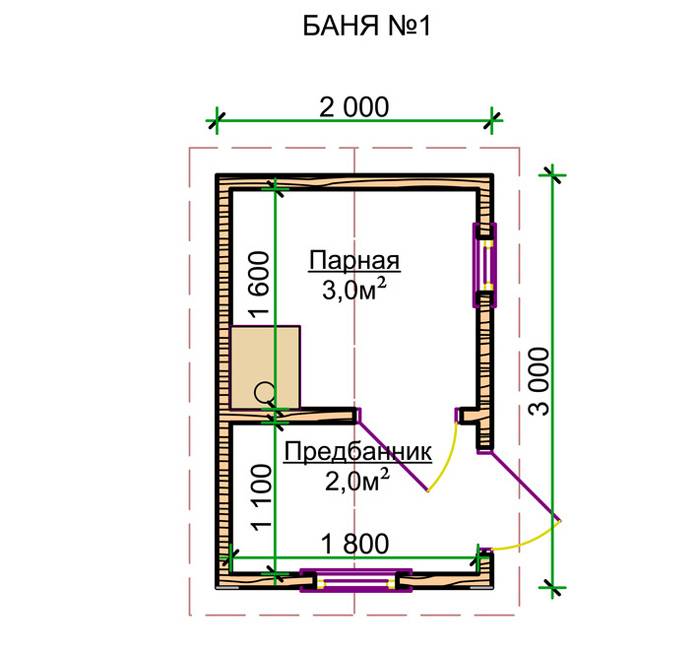 Convient pour une petite famille mini baindont la superficie est de 3 × 4. Dans ce cas, le bâtiment doit également inclure des locaux supplémentaires. Même un petit bain public devrait contenir un vestiaire et une salle de lavage. Sur la photo, vous pouvez voir des bâtiments miniatures, dont la taille est de 2 × 3. La construction de pièces spacieuses implique une augmentation du hammam et des étagères.