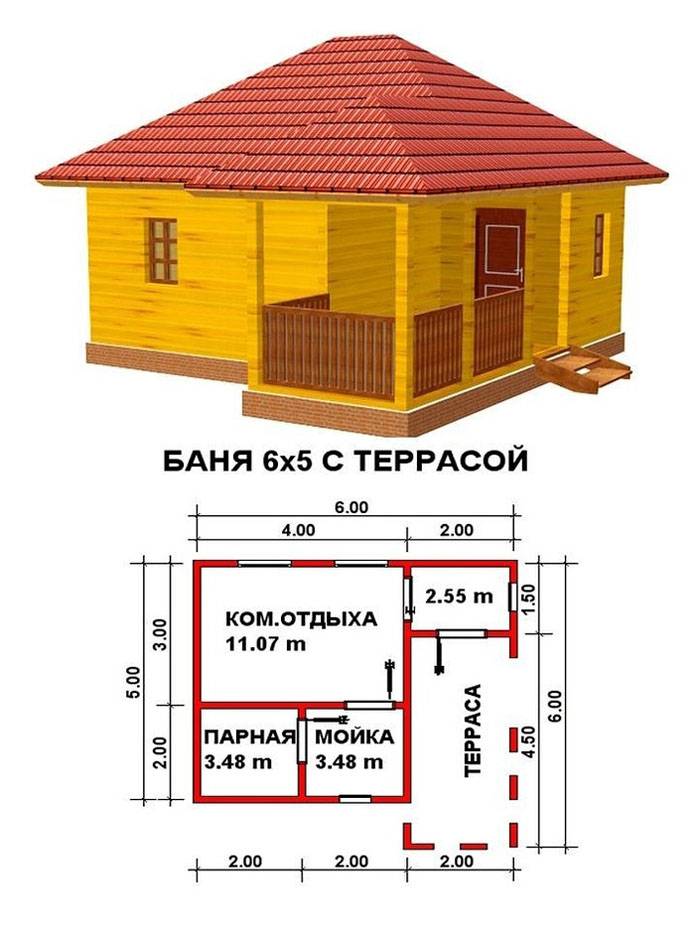 Lorsque vous décidez comment faire un bain, considérez l'option avec terrasse... Dans la vidéo ci-dessous, vous pouvez voir les fonctionnalités de ce projet: