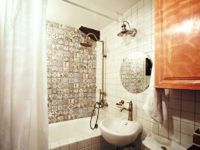 Vous pouvez parler beaucoup et longtemps des carreaux de céramique. C'est le matériau de finition qui n'a pas de rivaux en termes de résistance et de résistance à l'humidité. De plus, la grande variété des collections proposées permet de faire un et seul bon choix pour que la salle de bain corresponde au style choisi. Par conséquent, nous ne traiterons pas davantage des carreaux, nous donnerons simplement la possibilité de profiter du beau design des salles de bains de l'appartement dans la sélection de photos proposée.