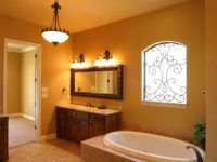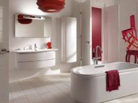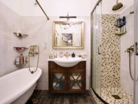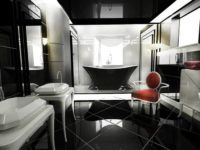 Ici, différents styles sont également utilisés, pour lesquels un bain, une décoration, mélangeurs et d'autres attributs. Et bien qu'ils ne parlent souvent pas de meubles dans de telles pièces, les designers parviennent toujours à les installer là-bas. L'essentiel est d'effectuer correctement la planification.