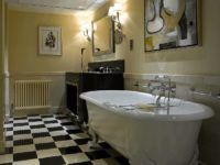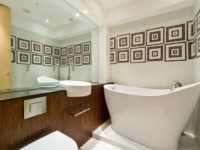Les concepteurs ajoutent même des éléments rétro à ce style. Mais la palette de couleurs de la salle de bain doit être en noir et blanc, les taches grises sont autorisées. Par conséquent, le matériau principal pour la finition de la salle de bain est des carreaux de céramique décalés. Bien sûr, aujourd'hui, à l'ère d'un monde en mutation, d'autres nuances ont commencé à être introduites dans le style art déco, mais elles ne doivent pas trop se démarquer.