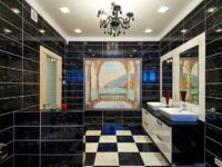 Et un autre point important - il est nécessaire de résoudre le problème d'éclairage avant le début de la réparation, car tout sera lié au câblage exact, en supprimant les extrémités pour les lampes, prises et interrupteurs... C'est pourquoi très souvent les réparations dans la salle de bain sont effectuées clé en main, c'est-à-dire de la création d'un projet à la pose du dernier matériau de finition avec l'installation de la plomberie et du mobilier (la photo ci-dessous est quelques variations sur ce sujet).