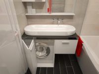 - La première erreur est donc de planifier. Habituellement, dans les petites pièces, la baignoire est installée le long de l'un des murs. S'il est décidé d'installer une machine à laver ici, il est préférable de privilégier une cabine de douche en retirant la baignoire. Bien qu'il existe une option de montage machines à laver sous l'évier, il n'y aura pas de place pour une armoire où vous pourrez mettre des serviettes et des accessoires de plomberie ménagers. Autrement dit, dans tous les cas, vous devez choisir.