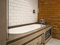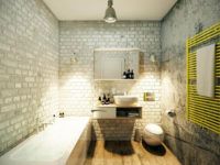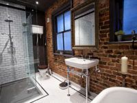 Mais il faut ajouter qu'ils ont lancé leurs tentacules dans ce style matériaux de finition modernes... Autrement dit, la brique en tant que base n'est pas toujours en premier lieu. Ils peuvent décorer une partie du mur, en mettant l'accent sur le remplissage de style, mais les surfaces restantes sont carrelées avec des carreaux de céramique, qui doivent être de la même taille. des briques... Ci-dessous sur la photo, une telle conception de salle de bain avec des murs carrelés.