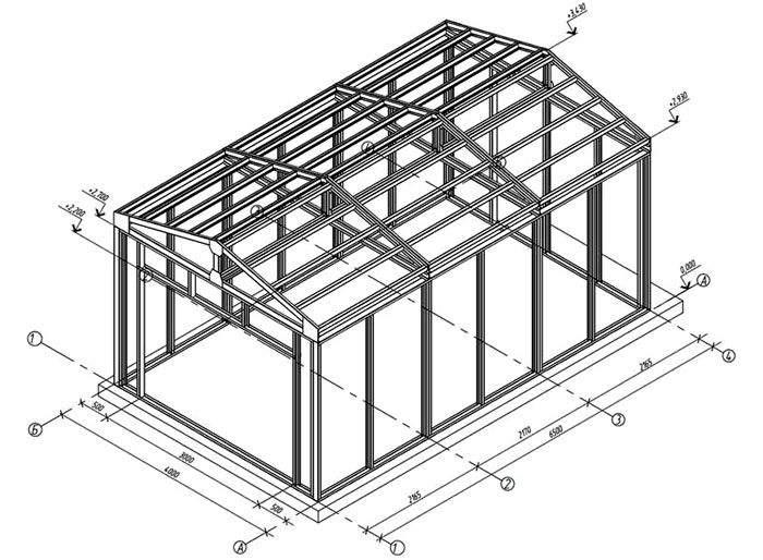À l'aide d'un tel dessin, il est facile de déterminer combien de panneaux sandwich pour mur et toit seront nécessaires pour construire un garage.