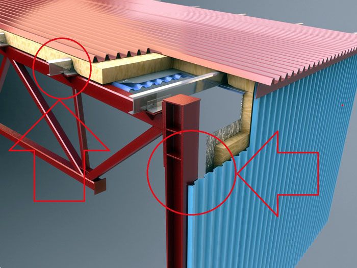 Cependant, il faut comprendre que des ponts froids sont formés aux endroits marqués sur la figure. Ils dégradent considérablement les caractéristiques isolantes de la structure. Les profilés en acier et les autres parties du cadre sont sélectionnés en tenant compte des exigences du projet. Vous devez d'abord préparer:
