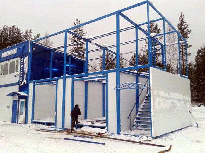 Les bâtiments à deux étages sont construits à partir de panneaux sandwich solides, qui sont installés verticalement. Dans cette version, le sol est renforcé, ce qui devrait résister à certaines charges avec une marge. Assurez-vous de prendre en compte le poids des meubles, des équipements.