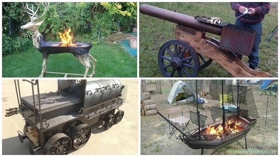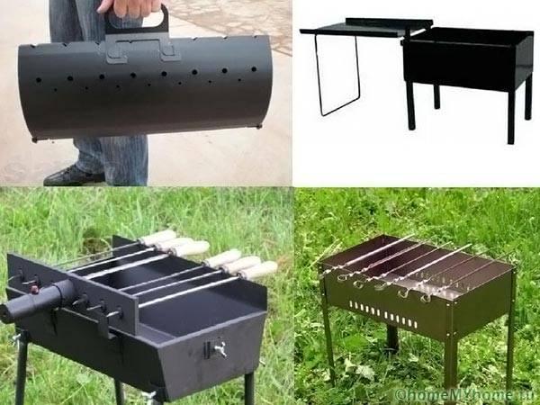 Les éléments décoratifs se trouvent généralement dans les modifications mobiles ou stationnaires. La durée de vie du foyer dépend de l'épaisseur du corps. Les barbecues portables sont divisés en pliables et transformables («valise»).