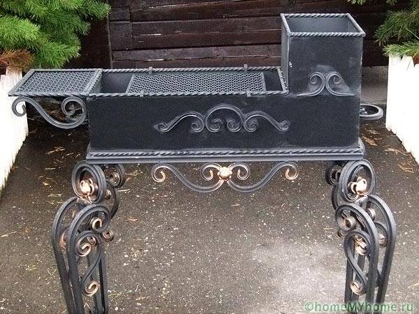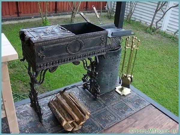 Les anciennes tables basses, les machines à coudre, au contraire, fournissent aux artisans des pieds en fonte de la forme originale, il vous suffit de compléter la structure avec des parois latérales. Les barbecues classiques sont construits en tôle d'acier, métal laminé (tuyau d'angle ou profilé).