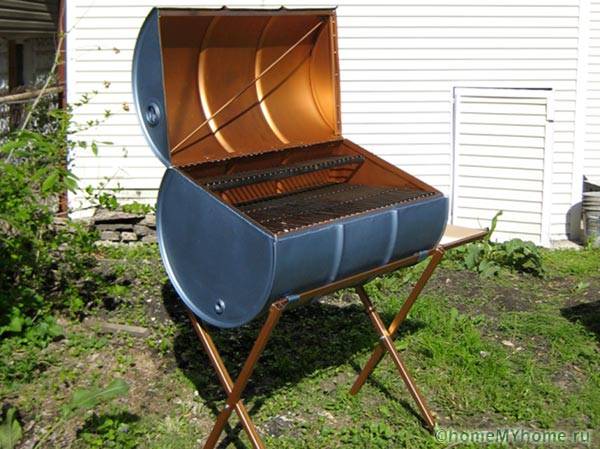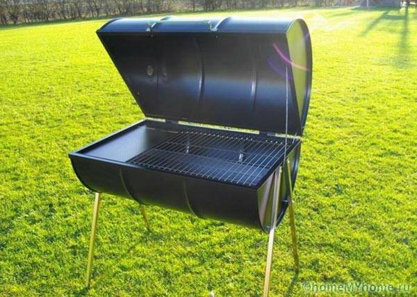 Information utile! Si le brasier est fabriqué à partir d'un tonneau, les charbons sont inégalement situés à l'intérieur, la structure est complétée par un foyer - une tôle d'acier à une profondeur spécifiée.