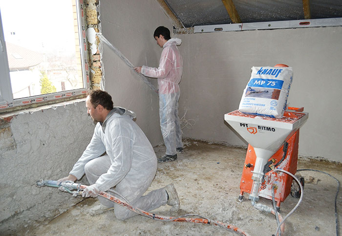 La préparation de la surface des murs et des plafonds pour le plâtrage à l'aide de moyens mécaniques ne diffère pratiquement pas des mesures ordinaires: