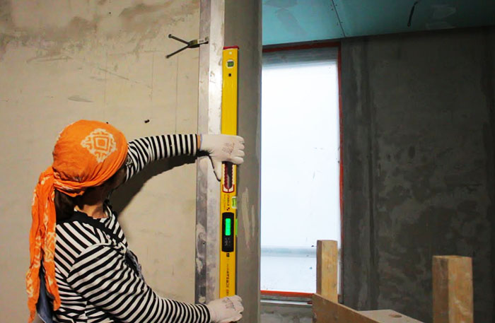 - Le traitement des murs de la pièce commence à partir des coins, puis le mélange de plâtre est appliqué sur les joints de toutes les structures, et seulement après cela en enduisant la zone principale de la surface de travail;