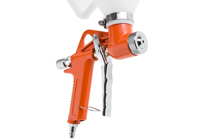 Se compose d'une buse sur une poignée de pistolet, au sommet de laquelle un récipient en métal ou en plastique (jusqu'à 9 litres) pour le plâtre est fixé. Le principe de fonctionnement est le même que celui de la trémie. Possède des buses remplaçables pour la buse (diamètre 3-8 mm), ce qui permet l'utilisation de mélanges de finition de différentes consistances. Il peut être utilisé non seulement pour le plâtrage grossier, mais aussi pour la finition décorative ou l'application d'un spray texturé.