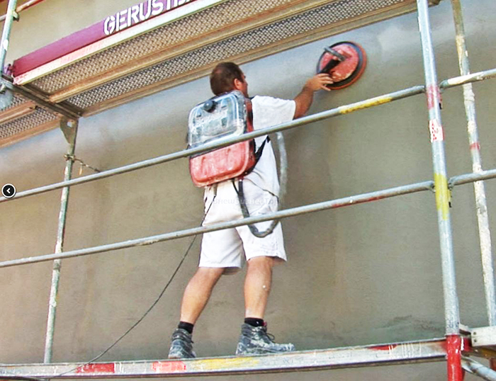- Rapidité des travaux de finition, quel que soit le type de surface à traiter. Selon le type d'enduit (ciment ou plâtre), l'avantage par rapport à l'application manuelle est de 4 à 7 fois.