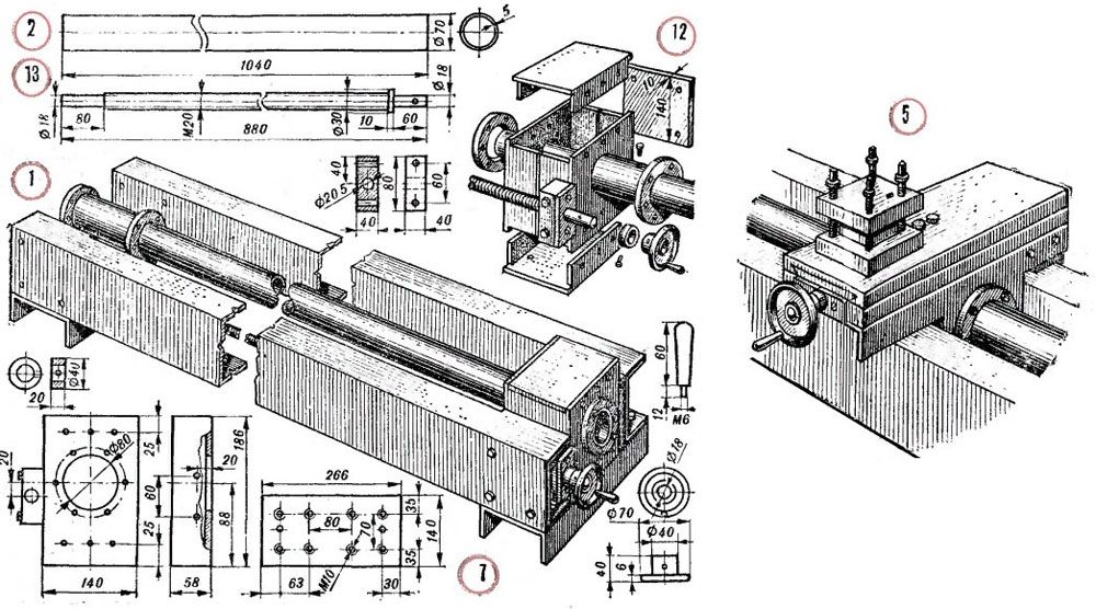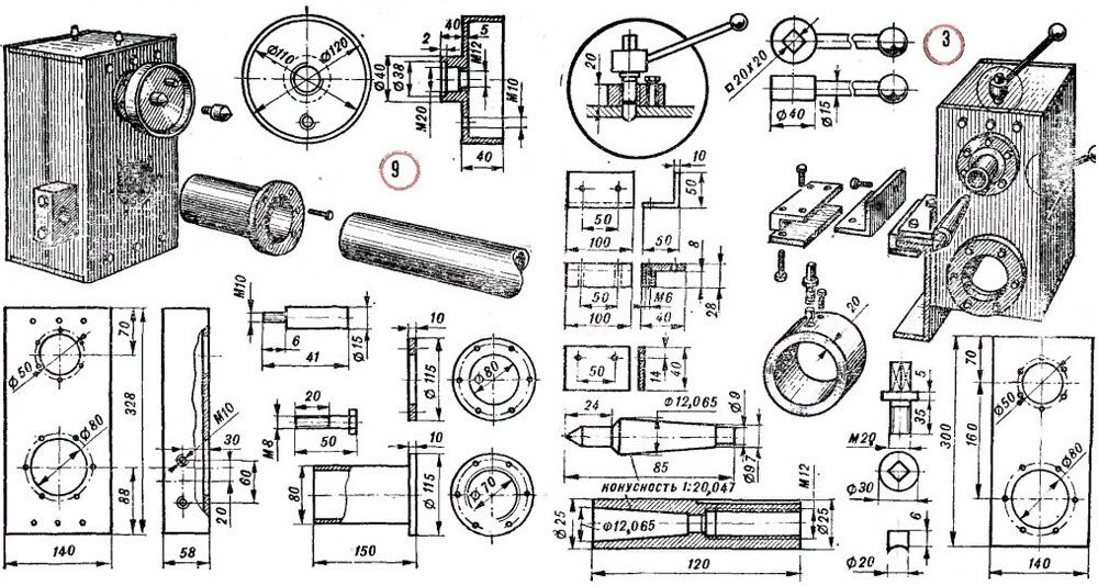 Les dessins ci-dessus sont un projet qui a fait ses preuves. Avec leur aide, vous pouvez fabriquer de vos propres mains un mini tour à métaux fonctionnel. Mais certaines améliorations modernes seront appropriées: