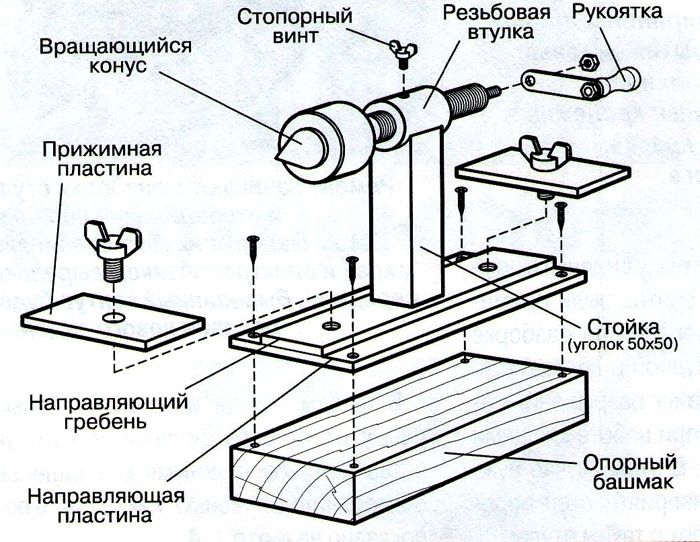 Le chapitre précédent a parlé des conceptions les plus simples qui aideront à fabriquer un tour à partir d'une perceuse en utilisant des matériaux peu coûteux à portée de main. Dans certains cas, même des dessins détaillés ne sont pas nécessaires. Cette approche est suffisante pour travailler avec des ébauches en bois, lorsqu'une haute précision n'est pas requise.