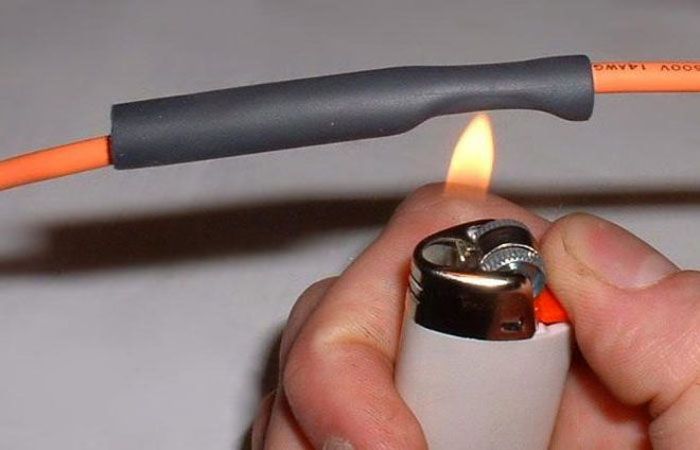 Lors de l'installation de tels produits, il suffit de placer le tube sur la section préparée du fil, des parties d'une machine ou d'un autre appareil, puis de le chauffer. Le chauffage est effectué avec un sèche-cheveux, un brûleur ou une source de flamme nue, si cela est autorisé pour des raisons de sécurité. Lorsqu'il est chauffé, le retrait diminue de taille et, se contractant, prend la forme d'un objet isolé, après quoi il durcit.