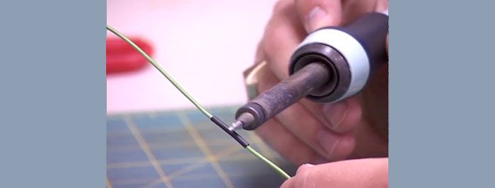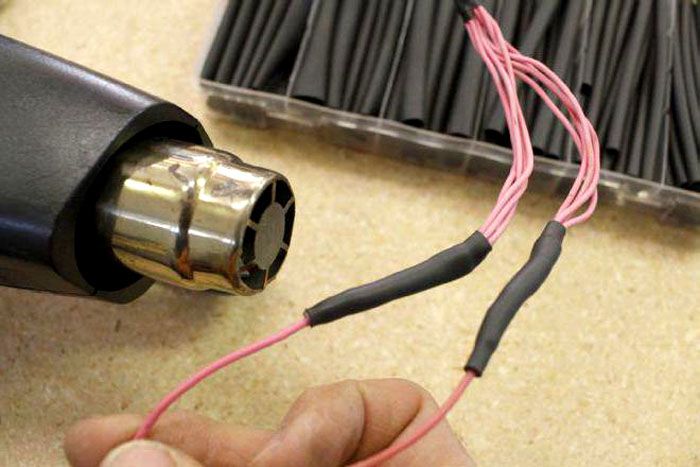 - s'il n'est pas clair si un morceau de rétrécissement thermique est suffisamment long, il est alors nécessaire de commencer le chauffage à partir de l'une des extrémités, à laquelle le tube thermorétractable doit se terminer (pointe de fil, fiche de communication, etc.);