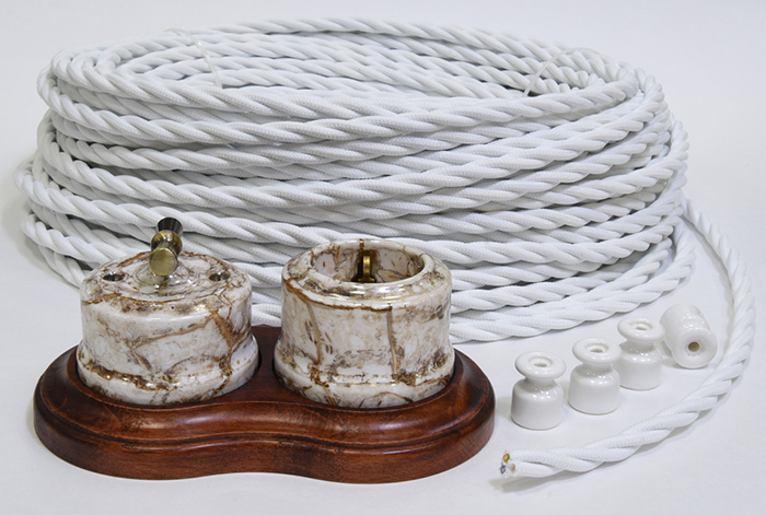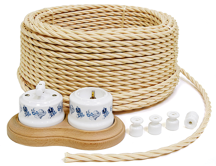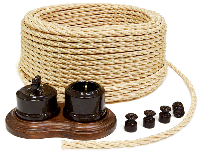 L'isolation décorative extérieure (tresse) est en coton technique ou en soie. Les fabricants de marque imprègnent la tresse de composés ignifuges ou la remplissent de vernis.Une large gamme de couleurs et de motifs sur la surface du câblage est très variée, ce qui vous permet de choisir la bonne option pour toute solution de conception.