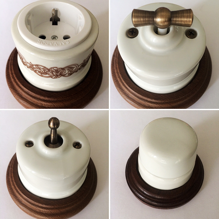 Douilles - les frais généraux, ont souvent des cadres d'installation spéciaux (pour 1-3 places) en bois, en plastique "comme le métal" ou en céramique. Pour les appareils souvent utilisés, il est préférable d'utiliser de la céramique, car ils évitent la chaleur.