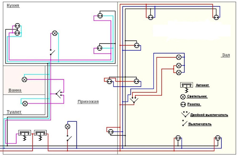 Tout d'abord, comme dans les travaux électriques ordinaires, un plan est créé pour la pose des câbles et l'emplacement des principaux éléments des équipements électriques.Pour ce faire, vous devez disposer d'un plan d'appartement à grande échelle ou d'un plan d'étage d'une maison privée. Il marque les emplacements des appareils d'éclairage, des interrupteurs et des prises, en tenant compte de l'emplacement des appareils électriques fixes et des meubles.